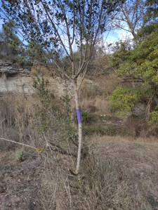 Busco coloraines enmig dels marrons de la tardor avançada. Unes branques de sanguinyol ofereixen uns morats preciosos, els fruits del galzeran trenquen la monotonia, i perquè no dir-ho, les escombraries i bretolades del personal que ha marcat els camins per fer curses o a saber quina cosa superimportant, esguerren les tonalitats de l’entorn amb grocs cridaners o pintura lila.