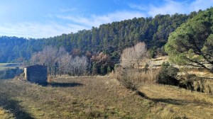 El paisatge alterna zones amb gatells i altres amb pollancres i àlbers fent un bosquet de ribera humil, però amb suficient entitat i en aquest punt si vols seguir riu avall cal fer una volteta i pujar com si anéssim cap al Llucià. La pista puja cap al sud i passa per una cabana de pedra seca, gira a l’esquerra i després torna a baixar cap al riu. Aquest és el camí que jo conec, però és possible que hi hagi alguna altra alternativa per la banda oposada del riu. Des de la Vinya de l’Onclo fins per aquí tot el camí està vigilat d’una manera una mica intimidatòria per la construcció del Llucià i la seva església vella.