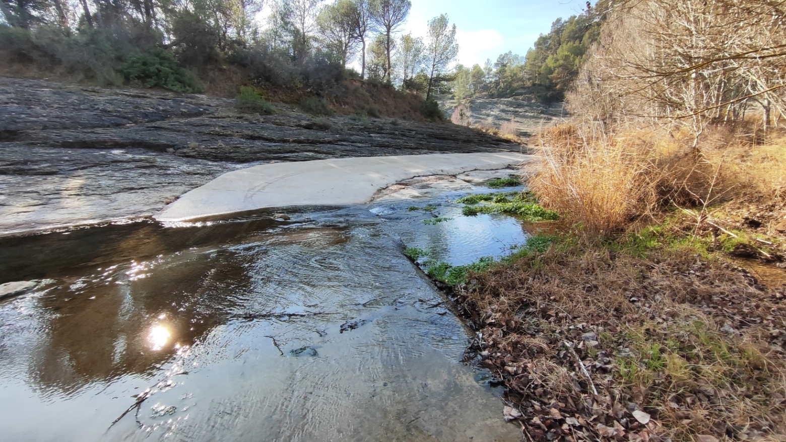 Davant del salt d’aigua hi ha una gran roca on fa temps hi havia vist un visó. Quan hi ha aigua aquest és un racó molt bonic.