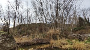 Però jo avui segueixo en sentit oposat cap al Molí del Castell, passant per sota de Malniu. El Molí era fariner i ara és una casa gran on hi ha gent. No sé fins a quin punt hi viuen ni de què viuen, però quasi sempre he vist certa activitat. Normalment, hi ha una colla de gossos que s’apropen i borden, però no fan res. Al costat de la casa hi ha una petita verneda, tanmateix està hivernant i valdrà més parlar-ne a la primavera quan llueixi més. Des de l’ensurt caní un sender fa drecera i segueix el riu en el seu trencament del meandre molt a prop dels murs de terra i pedra inestable del Castell. Fa entre 300 i 100 mil anys que el riu va fer aquest bypass i va abandonar l’espectacular meandre que rodeja el Castell. Arribo a un grup d’àlbers i ja soc a la Vinya del Rector.