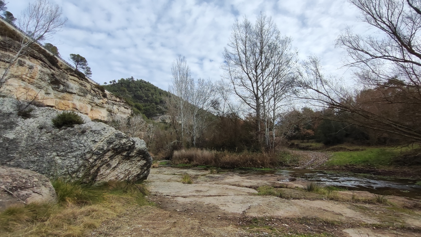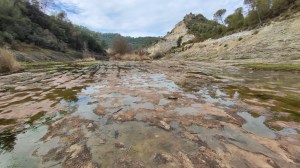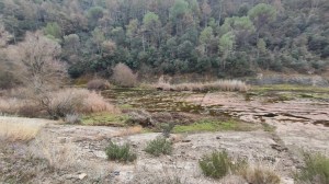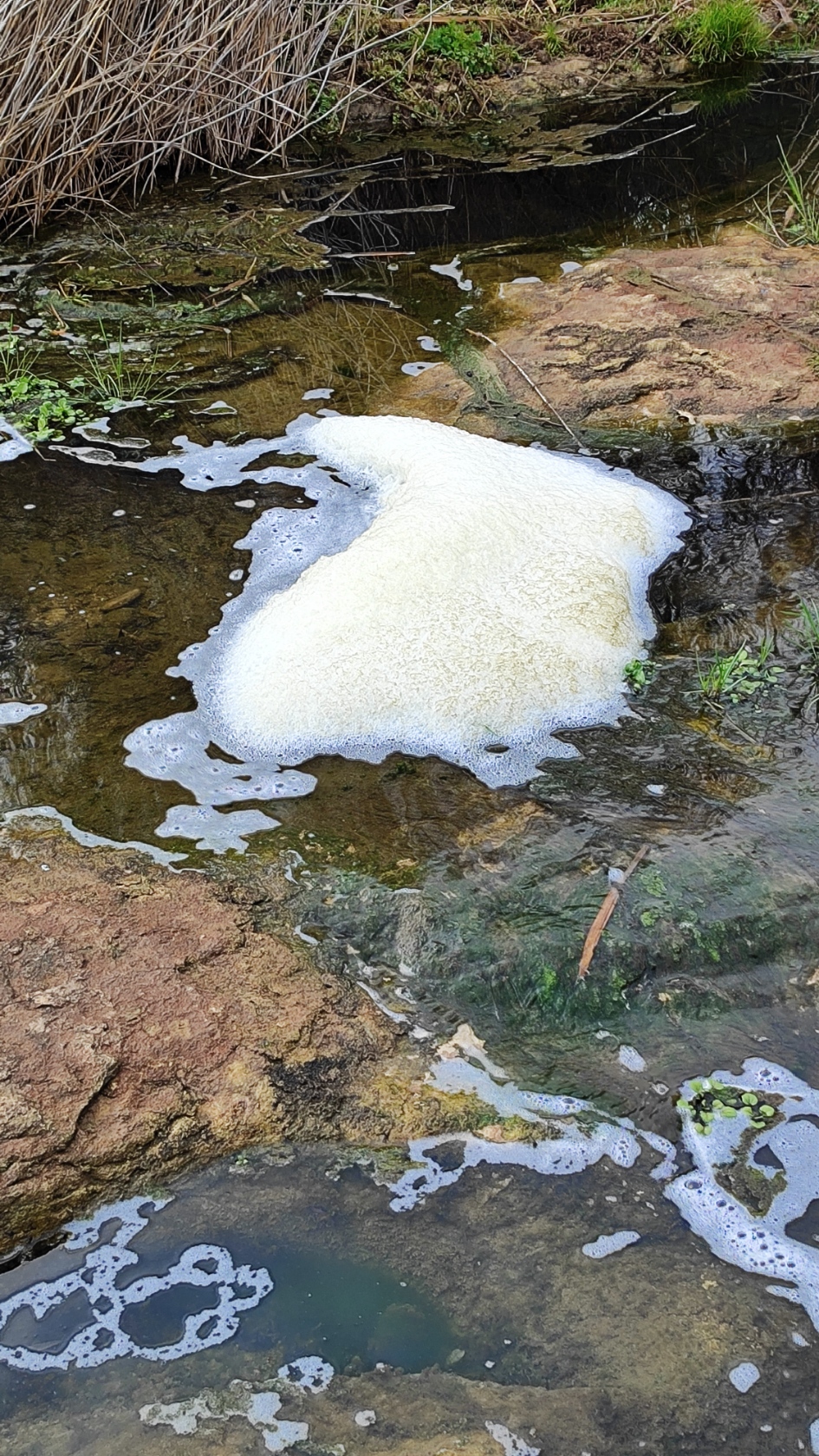 Remunto el contrafort de la cascada i arribo al replà del riu que tant sovintejo, i hi ha tensoactius dispersos per l’aigua. Em fascina veure que encara hi ha episodis de contaminació en aquest riu. Amb els calés que va disposar la UE per fer depuradores encara hi corre la merda. Quan vivia a Moià vaig observar directament com moltes fàbriques quan plovia obrien les aixetes i deixaven anar merda extra amb la confiança de què l’increment del cabal amagaria el delicte. Crec que des de llavors ha millorat una mica el tema, però encara hi ha usa el riu com a claveguera privada.
