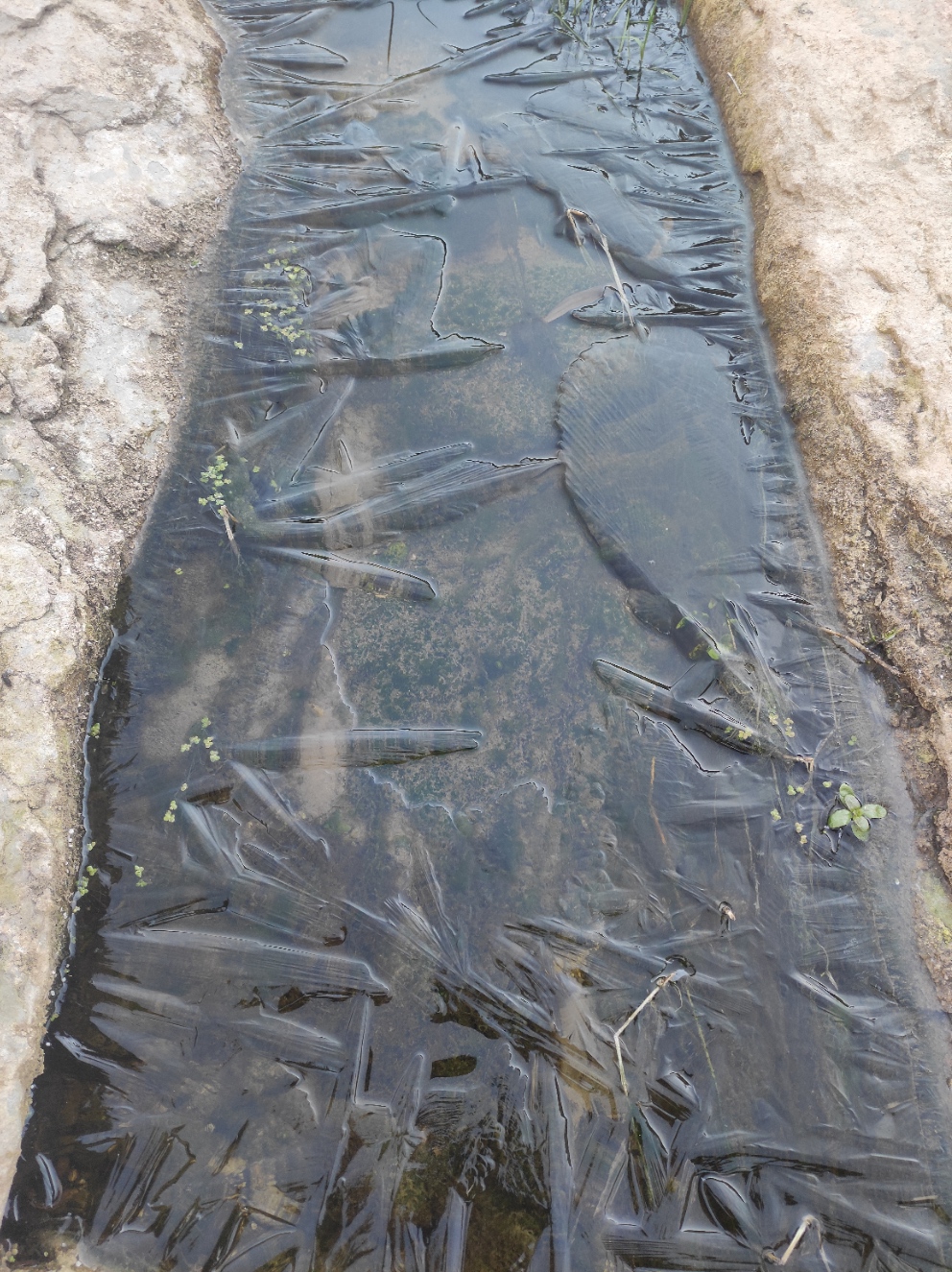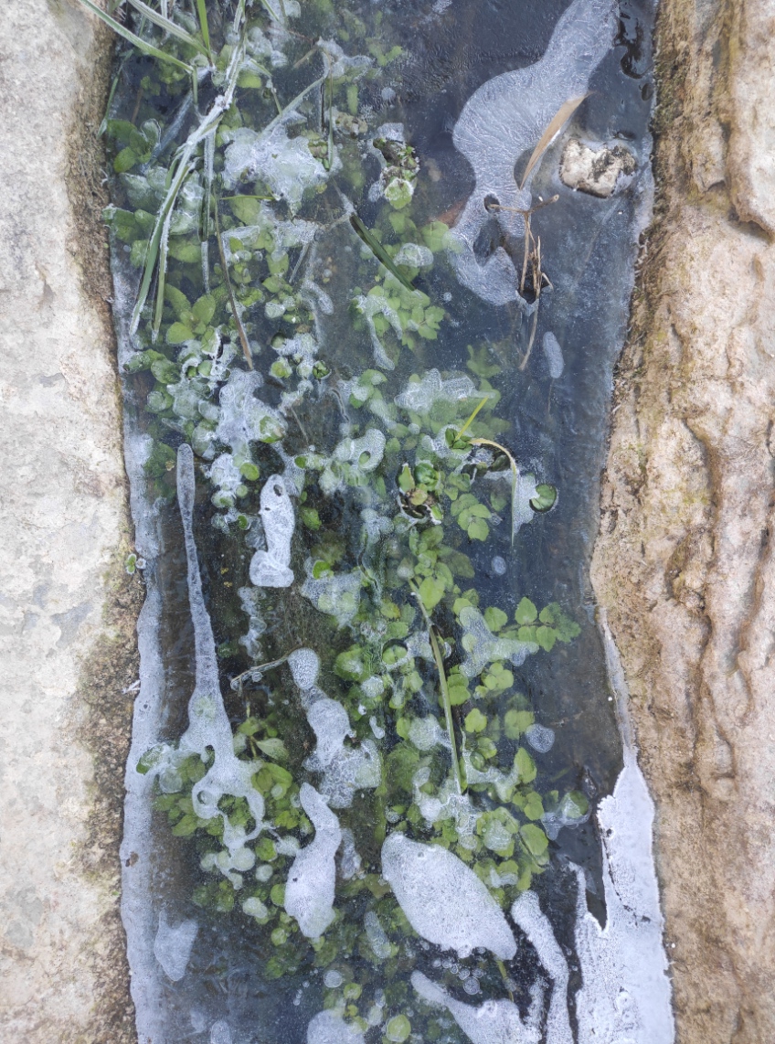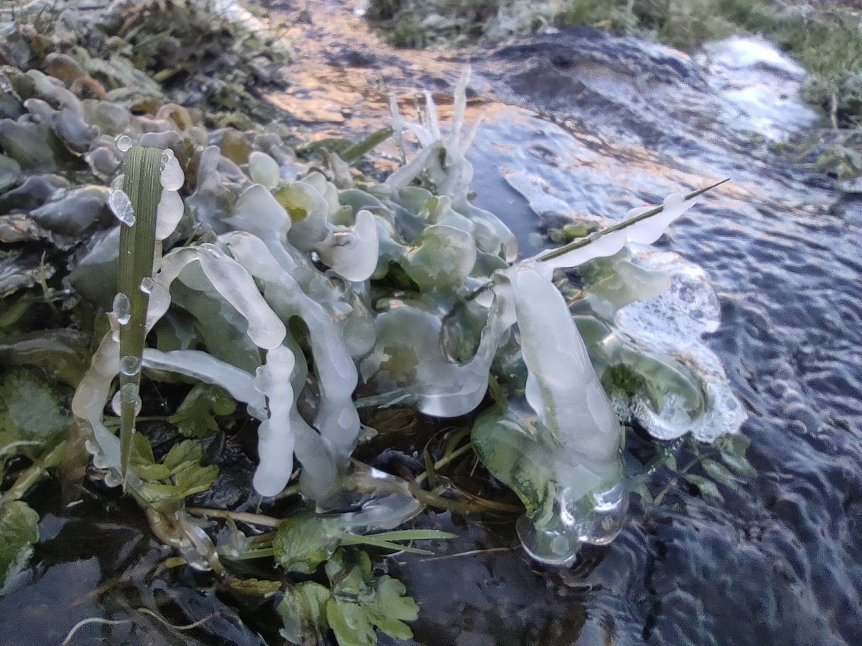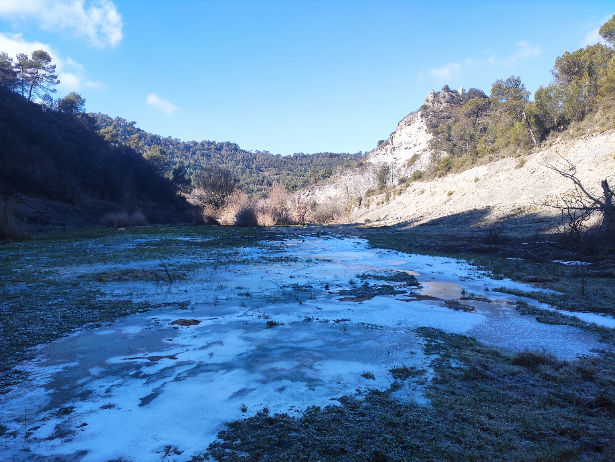 Soc una fredolica, però m’encanta el gel. Aquests dies que està fent fred no puc evitar anar a veure el riu i gaudir de la varietat de formes glaçades que es presenten. Hi ha tolls amb glaç blanc granulós, caramells que pengen de plantes o dels cantells de les pedres, plaques translúcides per sota de les quals el riu continua baixant, vitrines farcides de créixens gelats que semblen dedicatòries a un difunt. Més enllà del fred frueixo de les formes, que són molt variades i algunes d’elles precioses. Fa uns anys deia que aquests moments per a mi són com anar a veure aparadors. No compro res, però xalo amb l’art exquisit de les aparadoristes imaginàries o reals, però mai humanes. Seran les dones d’aigua del Moianès les que dissenyen els aparadors?