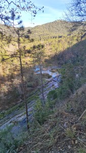 Passo de llarg El Xei. El paisatge cada cop m’imposa més. El bosc és dens i en alguns moments avall veig el riu, i els trossos que veig em semblen molt bonics. Fa esplanades on es veu un esquitx de xaragalls. El riu s’ajeu i s’esplaia. Lluny veig una teulada i em sembla La Datzira. No goso baixar al riu. M’agradaria, però no tinc piles i vull arribar al meandre de La Datzira i tornar. Em queda estona. En altres temps hauria gaudit més sense preocupacions, però ara tinc les forces justes.