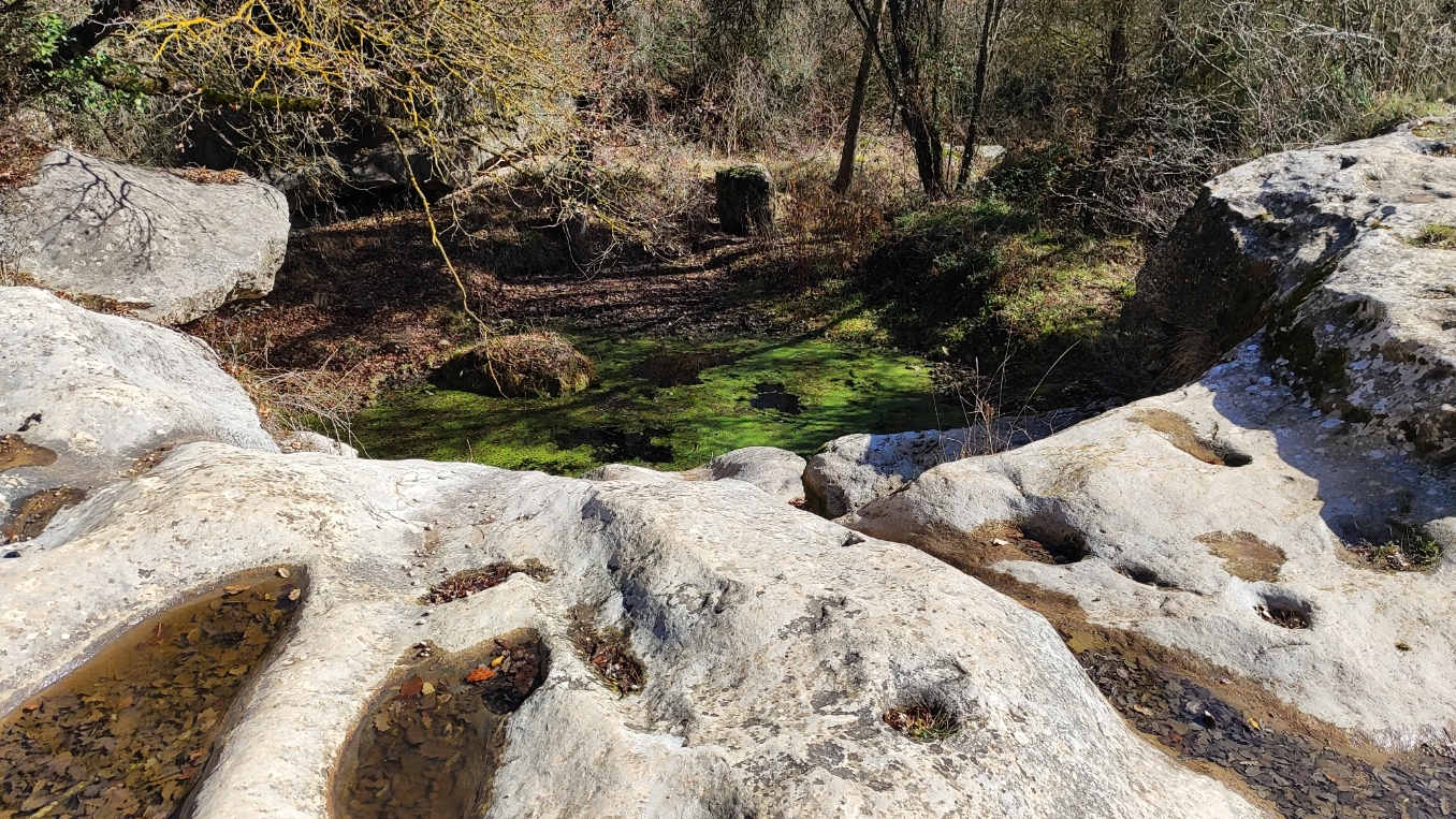 El territori és part de l’altiplà Lluçanès-Moianès i jo ara tafanejo per la part S.E. del quadrant que us comento. És la part més planera, però tampoc ens ho podem prendre molt al peu de la lletra perquè està farcida de fondalades arrodonides que combinen calcari i margues de manera que juguen al cuit i amagat amb l’aigua que hi ha, que ara és poca. És el que per exemple ha permès l’existència del fenomen càrstic de les coves del Toll.