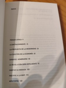 Refereix, és clar, a Ngugi Wa Thiong’o, quan defensa que les ciències socials africanes s’han de convertir en el subjecte del seu propi discurs i determinar-ne les pròpies pràctiques. Cita altres autors que seria interessant llegir, com Valentín Mudimbé, Kwasi Wiredu… Mudimbé, com Wa Thiong’o també incideix en el reemplaçament de les llengües europees per africanes per buscar un ordre discursiu propi. Ens remet a la física quàntica per explicar que principalment a les ciències socials no es pot separar l’objecte del subjecte, perquè la posició de l’observador modifica allò observat.