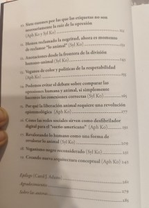 Aquestes idees fan que cregui en allò que apunta Syl que no es tracta d’incloure ningú, perquè incloure altres éssers en la colonialitat sigui de la manera que sigui és nodrir el monstre. Es tracta de desmuntar la colonialitat no de nodrir-la amb més aliment, i m’agrada la proposta que fa de “descolonitzar” la manera com pensem sobre els animals i com hem de pensar sobre nosaltres mateixes i sobre els altres. I m’agrada com exposen la relació existent entre racisme i especisme, principalment al si del pensament colonial. Encara que jo ja dic, em llançaria de cap a l’espiritualitat com a solució radical.
