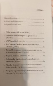 Però frenant-me una mica entenc i comparteixo que és ben cert que l’antiracisme/els drets civils i la defensa dels animals provenen de la lluita decolonial. M’agrada entendre un missatge que va més enllà del que és interseccional perquè no parla de punts d’intersecció entre lluites sinó d’una estructura d’opressió que integra molts problemes i que s’anomena colonialitat. I potser el gran debat hauria de girar al voltant de què significa exactament descolonitzar (m’obre moltes portes). Curiosament, quan llegia les germanes Ko estava acabant de llegir “Assaig al voltant de la colonialitat del poder” d’Anibal Quijano que casualment ens convida a focalitzar-nos en aquesta mentalitat i aquest sistema de coneixement que va precedir, va acompanyar, i va possibilitar els encontres colonials.