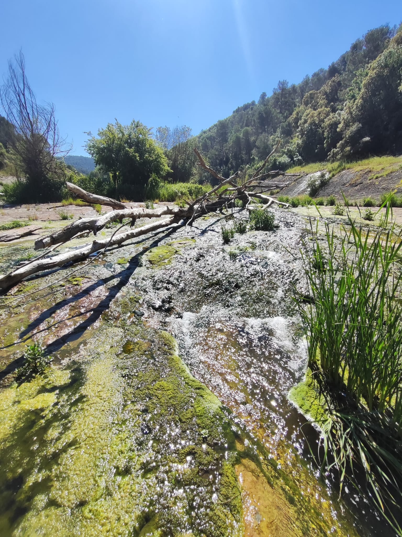 L’aigua llisca damunt la roca, i quan per exemple topa amb una escorça ensorrada, la transparència del meravellós líquid es farceix de llànties lluents que van emergint i semblen seguir el ritme musical que els ocells marquen. Ara que l’aigua hi és en abundància, quasi t’oblidaries del fet que és el component fonamental del lloc, és el que em dissol corporalment i espiritualment en el paisatge. El cos d’aigua ens uneix a totes les gents que som aquí predisposades a dissoldre’ns. Quan l’aigua no hi és els nostres cossos es toquen, fressen desesperadament, però no podem barrejar-nos en el Tot perquè hi manca l’esperit de l’aigua.