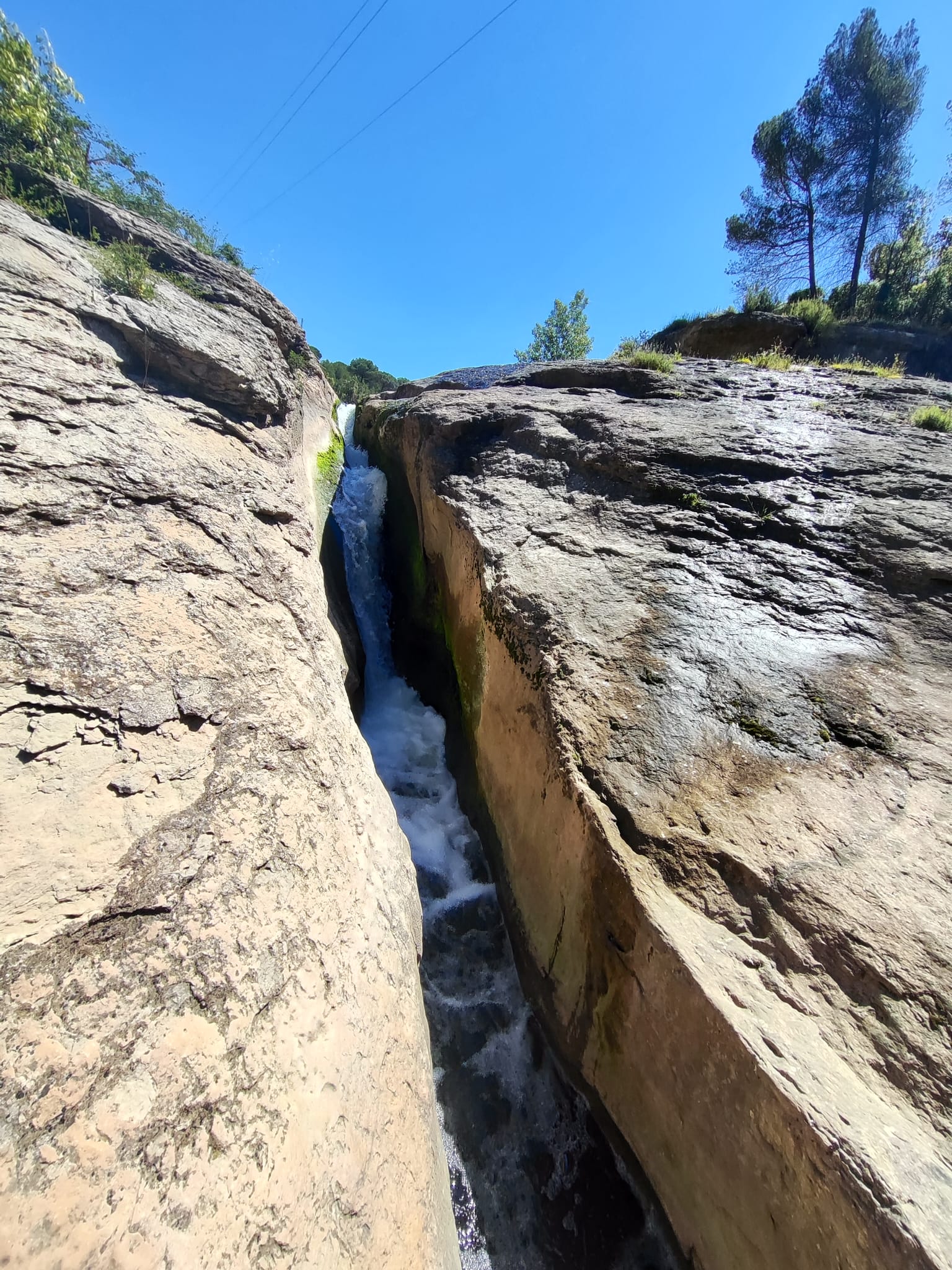 La gravetat crida l’aigua i li fa dibuixar relleus, l’empeny a buscar el lloc més directe per arribar al mar, o fins i tot li dona forces per què si no troba el camí l’esculpeixi. A on soc, entre 5 i 10 milions d’anys enrere, el riu feia un meandre espectacular que tendia a tancar-se cada cop més i envoltava el turó on ara hi ha les runes del castell de Calders. Un milió d’anyets enrere, el turó estava quasi envoltat d’aigua. El riu, en arribar a les immediacions del gual dels Dos Cabirols topava amb la resistència d’un contrafort rocós, però quan encara quedaven 300 mil anys perquè aparegués la meva estirp, va haver-hi un catacrac i el riu va obrir-se camí per on ara hi ha el salt d’aigua, i llavors el meandre es va fossilitzar.