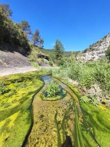 Tot i les pluges que van caient, el riu és calm. No observo grans terrabastalls produïts per avingudes. La tranquil·litat tardoral se m’enganxa. És l’estat d’ànim que toca ara. Alguna fulla de pollancre cau damunt l’aigua de tant en tant i es converteix en un petit vaixell sense timó, que navega sense voluntat seguint els mandats del corrent i els remolins. Les fulles finalment, ja sia per un petit salt d’aigua o per un contacte amb una pedra acaben al fons i a poc a poc es van formant cúmuls que s’agrupen i poden compartir les seves experiències particulars. S’expliquen els seus trajectes de vida.